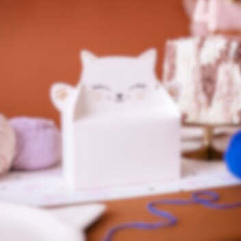 6 stk. Partybokser i lyserosa og hvitt med sjarmerende kattmotiver. Perfekt for å fylle med godbiter og overraske gjestene dine på en kattinspirert bursdag. Partyboksene er laget av høykvalitets papp og måler 19,5 x 19 x 8 cm når de er montert.