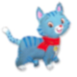 Blå folieballong formet som en søt katt med rødt skjerf. Ballongen er ca. 61 x 92 cm stor og kan blåses opp med helium eller luft.