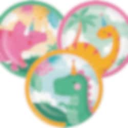 8 stk. pappasjetter med 3 stk. forskjellige dinosaurmotiver. Disse asjettene er perfekte for å invitere dine gjester og servere godbiter på en festlig og morsom måte. Asjettene er 18 cm i diameter.