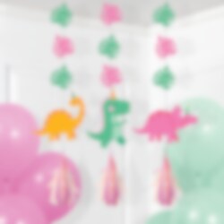 3 stk. hengende dekorasjoner med tilhørende tassels i fine farger samt motiv av søte dinosaurer og løv. En imponerende dekorasjon til dinosaurfesten. Dekorasjonene er ca. 91 cm lange og motivene er ca. 17 cm store.