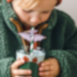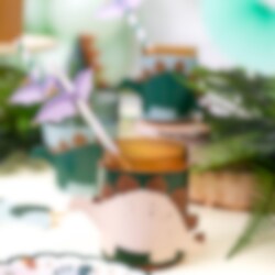 Kreative DIY koppdeksler med dinosaurtema. Hver pakke inkluderer seks justerbare pappdeksler. De er perfekte for å dekorere kopper eller drikkeglass og gjøre hver drikke til en del av bursdagens tema. Størrelse: 29,5 x 10 cm.
