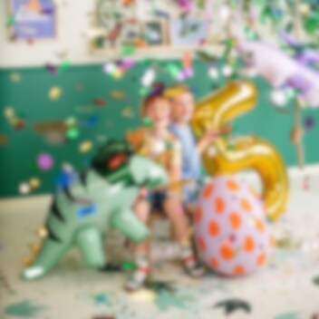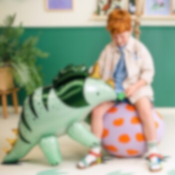 Folieballong som forestiller en Tricatops i grønne farger med detaljer i gullfolie som vil være en morsom dekorasjon til dinosaurbursdagen. Ballongen er 101 x 60 cm når den er oppblåst og kan blåses opp med vanlig luft eller helium.