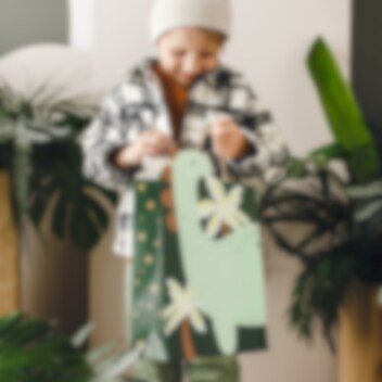 Gavepose som skiller seg ut med sitt vakre design i dinosaur-tema. Posen har to håndtak, er laget av papir og er 10 x 37 x 24 cm stor.