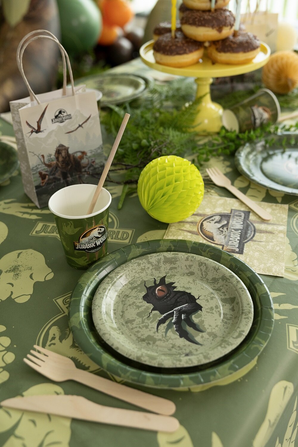 Tre inn i en verden fylt med spennende dinosaurer med disse asjettene fra Jurassic World! En mystisk skapning med et glødende oransjerødt øye og skarpe klør bryter seg frem gjennom tallerkenen, klar til å overraske bursdagsgjestene.