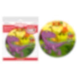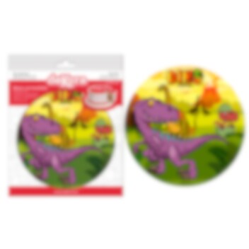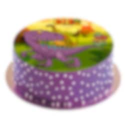 Søt kakebilde av god fondant i fine farger med motiv av Dinosaur og smak av vanilje. Kakebildet er klar til å plasseres direkte på kaken. Bilde av sukkerpapir er klare og tydlige i sin trykk. Bildet er ca 20 cm i diameter.