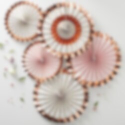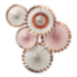 5 stk. ordentlig glamorøse dekorasjonsmåner, eller vifter som de også kalles, der 3 kommer med vakkert blomstermønster og 2 er pastellrosa med prikker. Samtlige har detaljer og kanter i glinsende roségull. De er lette å montere og henge opp inntil en vegg for å løfte din dekorering til et nytt nivå. Dekorasjonsmånene passer godt til fest, babyshower og andre festlige anledninger.