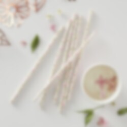 25 stk. sugerør med superfint motiv av fargerike blomster. Et must til festbordet eller til babyshoweren. Sugerøret er laget av vokset papp av gammel tradisjon og er ca. 20 cm. lange.