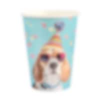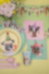 Morsom bordsløper med festlige hundemotiver som passer perfekt til bursdagsfest, fest og andre feiringer der borddekkingen gjerne kan være litt ekstra festlig. Hundene med festhatter langs kantene gir et lekent uttrykk, mens den fargerike konfettibakgrunnen binder sammen hele borddekkingen.
