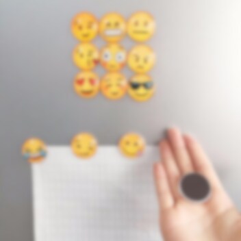 Emoji kjøleskapsmagneter kommer i en pakke på 5 stk. og inneholder runde magneter med forskjellige Emoji-motiver. Kjøleskapsmagnetene leveres usortert, noe som gjør at hvilke emojier du mottar blir en overraskelse. Hver emoji er ca. 3 cm stor og kan både være en morsom gave, eller herlig pynt til kjøleskapsdøren.