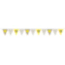 Fargerik flaggirland av papp med morsomme motiv av smileys på den ene siden. En dekorativ sak å pynte rommet med når du skal ha fest med smiley tema. Flaggirlangen er ca. 3,3 meter lang.