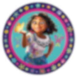 8 stk. tallerkener med vakre Mirabel fra Disney-filmen Encanto. Tallerkenene er laget av papp og er 23 cm i diameter. Inviter vennene dine til en morsom fest og by på kake og kjeks på tallerkenene.