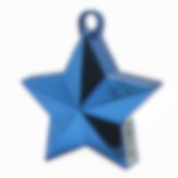 Stilig stjerneformet ballongvekt i blå farge til å feste heliumballonger i. Vekt ca 170 gram.