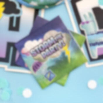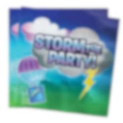 16 stk. fargerike servietter med motiv av teksten "Storm the Party!" på den ene siden. Perfekt tilbehør til festen med Battle Royal som tema. Serviettene er 2-lags og er ca. 33 x 33 cm store utfoldet.