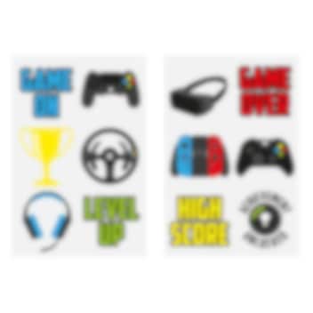 6 stk. tatoveringer med morsomme gaming-motiv. En kul ting å legge i godteposen eller partyboksen når det dukes til fest med spilltema. Legg merke til at tatoveringene finnes på to forskjellige ark og de selges stykkevis og usortert.