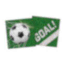 Gjør borddekkingen ekstra festlig med disse serviettene med fotballmotiv. Den grønne bakgrunnen, fotballen og teksten GOAL! gir en leken og sporty følelse som passer perfekt til fotballbursdager, kampfeiringer og bursdager med sportstema.