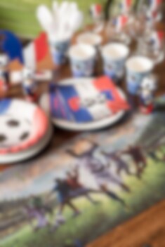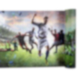 Stilig bordløper med motiver av et fotballag som har vunnet en kamp. Kle bordet med denne før festen med et morsomt fotballtema. Bordløperen er i et polyestermateriale, og er ca 30 cm bred og 5 meter lang.