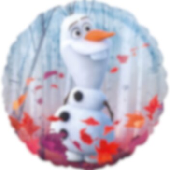 Rund folieballong med motiv på begge sider, Anna, Elsa og Olaf i en vinterskog med fargerike løv fra filmen Frost 2. En søt dekorasjon å ha med i din Frost fest. Ballongen er ca 45 cm i diameter når oppblåst og blåses enklest opp med helium.