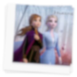 20 stk. servietter med hvite kanter og flotte motiv fra Disneys film Frost 2. Vær oppmerksom på at serviettene har ulike motiv på hver side. På den ene siden av serviettene er det motiv av søstrene Anna og Elsa, og på den andre siden av snømannen Olaf. Serviettene er 2-lags og er ca. 33 x 33 cm utfoldet.
