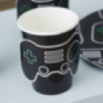 8 stk. pappkopper med 3D-effekt av kule spillkontroller fra den stilige Game On-kolleksjonen. Den perfekte borddekorasjonen til festen med et morsomt spilltema. Koppene er ca. 10 cm høye og rommer ca. 266 ml.
