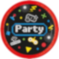 8 stk. papptallerkener i svart og rødt med kule spillmotiver. Tallerkenene er 23 cm i diameter og er laget av FSC-merket papir.
