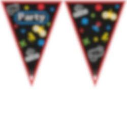 Kul flaggirlander med morsomme spillrelaterte motiver i retrostil. En herlig dekorasjon å pynte rommet med til festen med et morsomt spilltema. Girlanderen er ca. 2,3 meter lang og hver vimpel er ca. 24,5 cm høy.