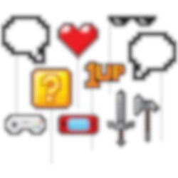 10 stk. photoprops med morsomme spillemotiver i retrostil. Disse kan du bruke når du og dine venner vil ta fine og morsomme kort på festen.