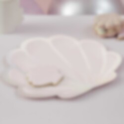8 stk. skjellformede tallerkener av papp i rosa farge med perlemorsglitrende effekt fra den fine kolleksjonen Mermaid Magic. Perfekt å dekke bordet med når det er tid for en glamorøs havfrueinspirert fest. Tallerkenene kan også brukes som serveringsfat. Tallerkenene er ca. 23 x 25 cm store.