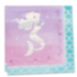 16 stk. servietter i pastellfarger med vakkert iriserende havfrue-motiv. Serviettene er 3-lags og er 33 x 33 cm store.