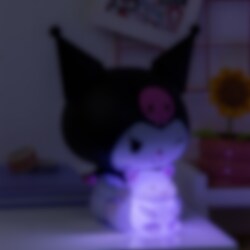 Denne søte lampen forestiller Kuromi som klemmer sin lille sidekick Baku. Når lampen er tent, lyser Baku i en myk lilla farge som skaper en koselig stemning. Perfekt både som nattlampe eller som en sjarmerende detalj i bokhyllen, på skrivebordet eller i et Sanrio inspirert rom.
