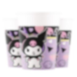8 stk. pappkopper med kult og fargerikt motiv av Kuromi mot en lilla og svart bakgrunn. Perfekte når du vil få til en helhetlig og tøff borddekking på bursdagen med Kuromi-tema.