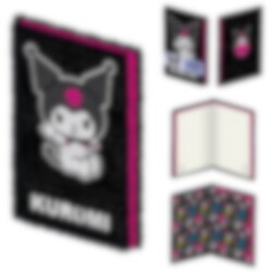 Eksklusiv Kuromi-notatboken i A5-format! Omslaget er laget av myk, svart plysj med opphøyde 3D-detaljer av Kuromi, den kuleste figuren fra Sanrio-verdenen.
