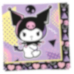 20 stk. servietter med kult og fargerikt motiv av Kuromi mot en lilla og svart bakgrunn med hjerter og hodeskaller. Perfekte når du vil få til en helhetlig og tøff borddekking på bursdagen med Kuromi-tema.