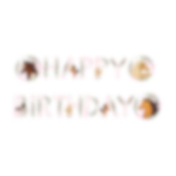 Girlander av papp i hvit og rosa med motiv av teksten "Happy Birthday", i tillegg til hester og blomster. En flott dekorasjon å henge opp til en fest med hestetema. Girlanderen er ca. 1,4 m lang.