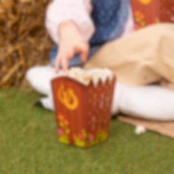 Gi festen et koselig gårdspreg med disse flotte popcornbegrene i hestetema. Designet minner om en stallvegg pyntet med hestesko og blomster, og passer perfekt for små ryttere og hesteelskere.