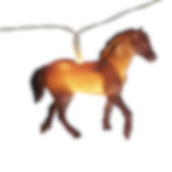 Flott lyslenke med 8 stk. LED-lys i form av fancy hester. Den absolutt ultimate tingen å dekorere rommet med for en stilig effekt på enhver fest med hestetema. Lyslenken drives av 3 stk. AA-batterier er ikke inkludert.