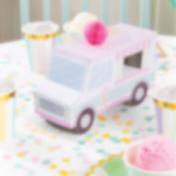 Borddekorasjon som forestiller en isbil i pastellfarger. Sett prikken over i'en ved å pynte bordet med denne fine dekorasjonen. Isbilen blir ca. 26 x 16 x 9 cm stor når den er montert.
