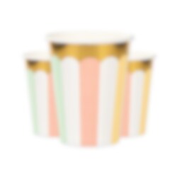 8 stk. pappkrus i fine pastellfarger med gullfolierte kanter. Fine å dekke på med når det er fest med Ice Cream Party som tema. Krusene er ca. 10 cm høye og rommer ca. 266 ml.
