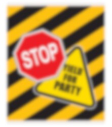8 stk. godteposer i plast med kule motiver av streker i sort og oransje, samt et stoppskilt og et trekantet skilt med teksten "Yield for party". Fyll godteposene med godteri, leker eller noe annet gøy som passer til festen og del de ut til gjestene. Godteposen er ca. 19 x 23 cm.