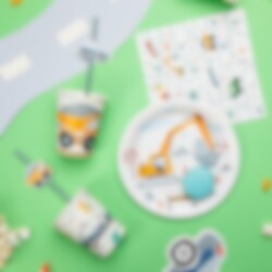 6 stk. pappasjetter med motiv av fargerike kjøretøy, perfekte til en bursdag med kjøretøytema! Asjettene har en diameter på ca 18 cm.