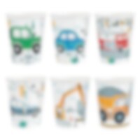 6 stk. pappkopper med fargerike kjøretøymotiver, perfekte til en morsom bursdag med kjøretøytema! Koppene er 9 cm høye og rommer 220 ml.