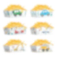 6 stk. cupcake wrappers laget av papp med forskjellige kule kjøretøy, perfekte som dekorasjon til dine muffinsformer. Bredden er 7,5 cm og høyden ca 6 cm.
