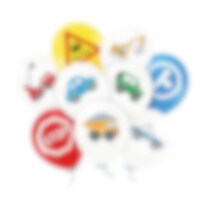 9 stk. fargerike latexballonger med forskjellige kjøretøy og trafikkskilter. De er perfekte til å dekorere med til en bursdag med kjøretøytema. Ballongene blir ca 30 cm i diameter når de er oppblåste og kan fylles med luft eller helium. Hvis du blåser dem opp med luft, anbefaler vi at du bruker en ballongpumpe. Ballongene er laget av 100 % nedbrytbar naturlig latex.