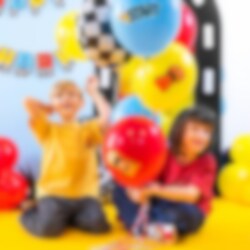 Sett full fart på festen med disse fartfylte Racing Car-ballongene! Settet inneholder 6 lateksballonger i rødt, gult og blått med kule racerbiler og tekster som START, GO og SPEED, samt en flott svart-hvit rutet folieballong som tar festen i mål.