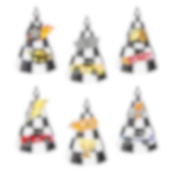 Hattene er 16 cm høye og 10 cm i diameter. Settet inneholder 6 hatter, 12 trykte papirdekorasjoner og 20 limprikker.