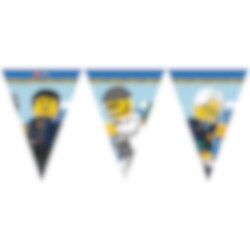 Flott vimpelgirlander i blå og gul med en kule motiver fra LEGO City. Den perfekte dekorasjonen til enhver fest med LEGO-tema. Vimpelgirlanderen er laget av papir og er ca. 2,3 m lang.
