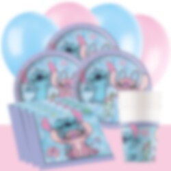 Denne vakre festpakken med Stitch og Angel inneholder alt du trenger til en morsom bursdag. Pakken inneholder papptallerkener (23 cm), pappkopper (200 ml) og servietter (33 x 33 cm) til 8 eller 16 personer.