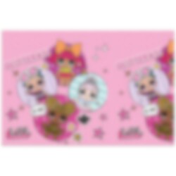 Duk til bordet av plast i rosa nyanser samt med motiv av Glitterati klubbens medlemmer fra LOL Surprise. En kul ting å ha med på festen. Duken er ca 120 x 180 cm stor.