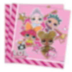 20 stk servietter i rosa nyanser og med motiv av Queen Bee, Glitter Queen, Cosmic Queen og Crystal Queen på begge sider, fra den populære serien LOL Surprise. Et stilig tilbehør å ha med på bordet på festen med LOL Surprise som tema. Serviettene er 2.lags og er ca 33 x 33 cm store når de er foldet ut.
