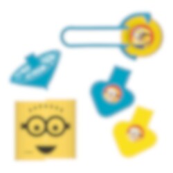 24 stk. små leker med Minion-tema. Morsomt å legge i bursdagsposen eller bruke i pinataen foran festen med Minions eller Despicable Me som tema. Pakken inkluderer 6 stk. fløyter, 6 stk. discshooters, 6 stk. spinn topper og 6 stk. fjærer.