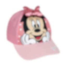Denne rosa barnecapsen med Minnie Mus-motiv er en storfavoritt blant små Disney-fans. Foran vises et smilende Minnie-ansikt, og på toppen sitter en blank satengsløyfe som gir capsen et lekent og sjarmerende uttrykk. Bremmen er brodert med Minnies navn i hvitt – en stilig detalj som gir det lille ekstra.